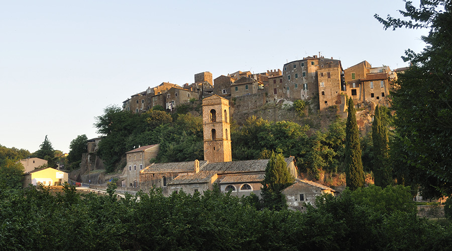 An important local town perched on a flat spur of rock rising from steep ravines, built on the ruins of the Faliscan town of “Falerii Veteres”. Its most significant buildings are the cathedral, an impressive example of Romanesque architecture and the imposing Rocca dei Sangallo fortress with its frescoed courtyard. The fortress houses an archaeological museum with interesting examples of local finds.